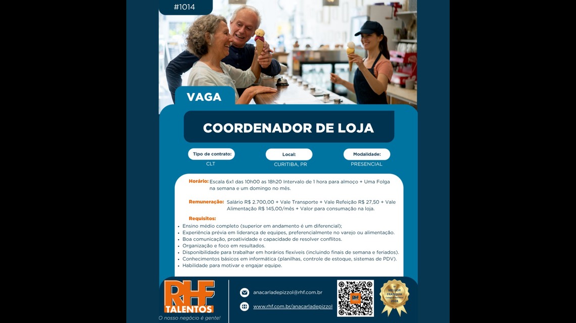 VAGA: COORDENADOR DE LOJA N° DE VAGAS: 01