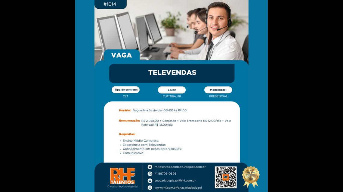 VAGA: TELEVENDAS N° DE VAGAS: 2