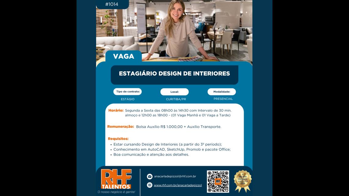 VAGA: Estagiário Design de Interiores N° DE VAGAS: 02