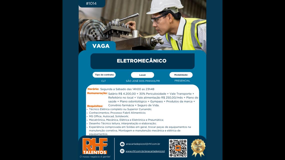 VAGA: TÉC. ELETROMECÂNICO N° DE VAGAS: 1