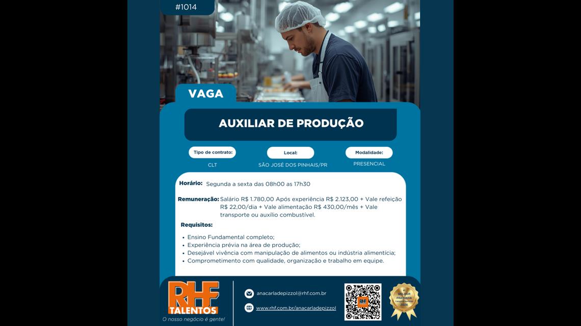 Vaga: Auxiliar de Produção