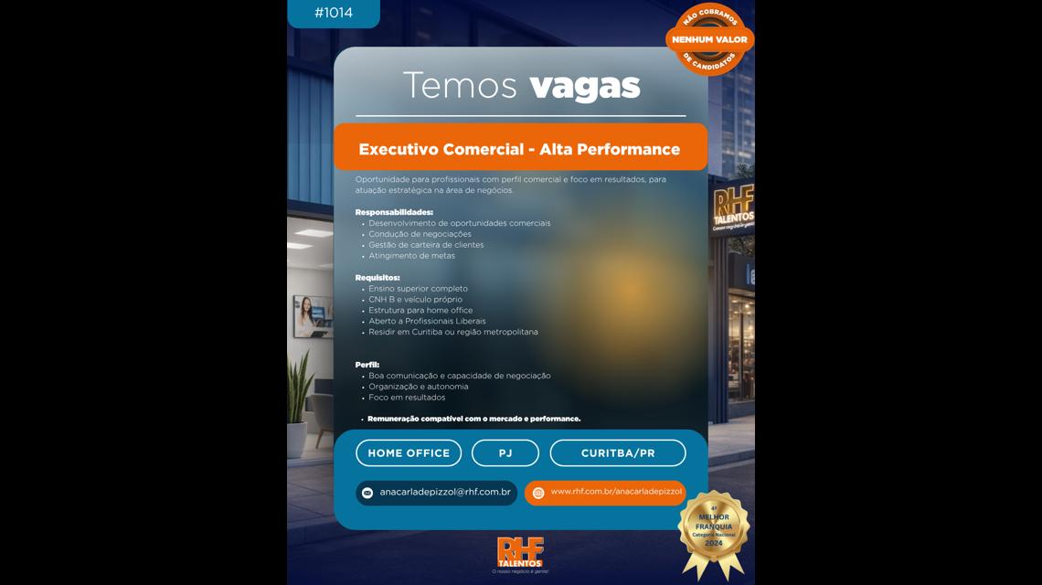 Oportunidade para profissionais com perfil comercial e foco em resultados, para atuação estratégica na área de negócios.